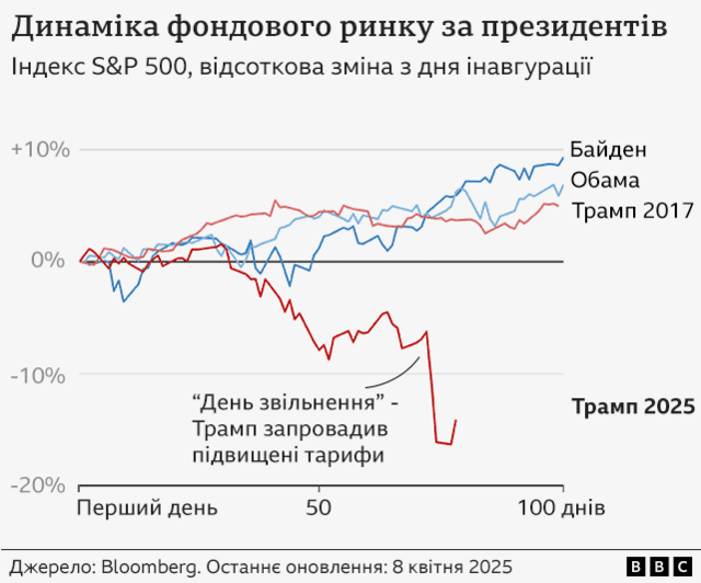 Акции в Соединенных Штатах резко упали, когда Трамп объявил 2 апреля, Трамп объявил о введении повышенных тарифов для многих стран мира.
